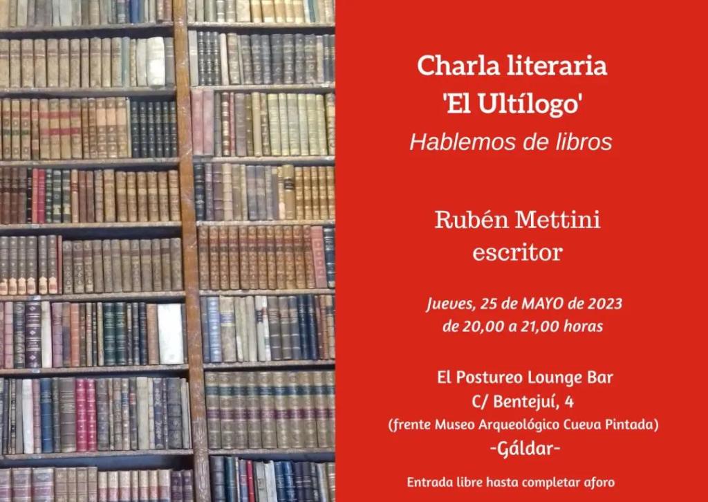 Este jueves, 25 de mayo, tenemos nueva cita con la Charla Literaria El Ultílogo, en esta ocasión, teniendo como invitado al escritor argentino Rubén Mettini.