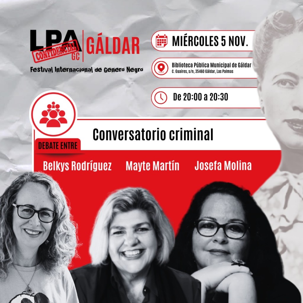 El miércoles, 5 de noviembre, a partir de las 18,00 horas, se celebran varias mesas y charlas en el marco del Festival Internacional de Género Negro LPA Confidencial, en las que tengo el placer de participar.