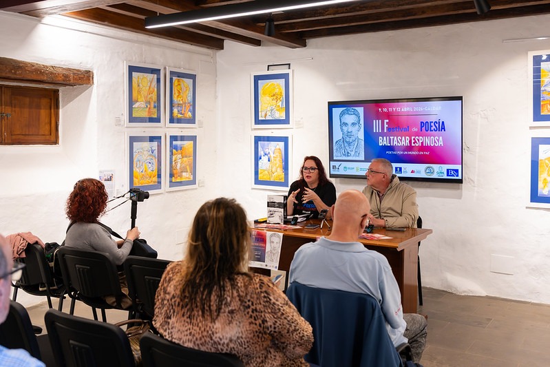 La presentación del III Festival de Poesía Baltasar Espinosa corrió a cargo de la presidenta de la Asociación de Escritoras y Escritores ‘Palabra y Verso’, Josefa Molina, y del concejal de Patrimonio Histórico y Biblioteca del Ayuntamiento de Gáldar, Carlos Ruiz.