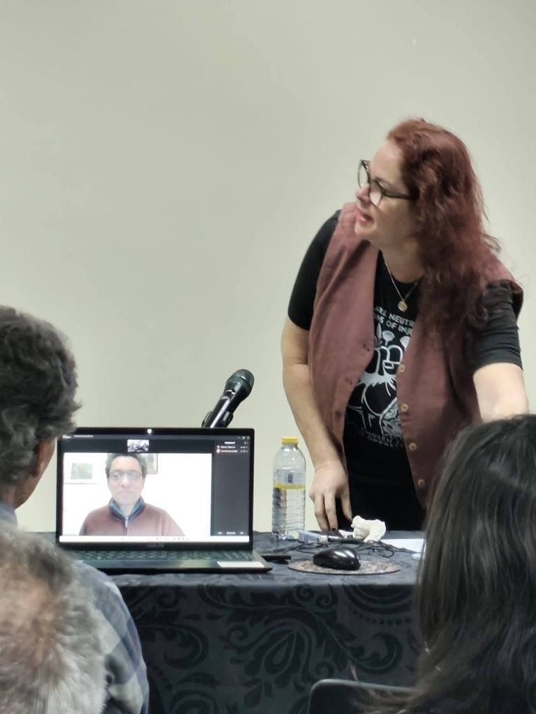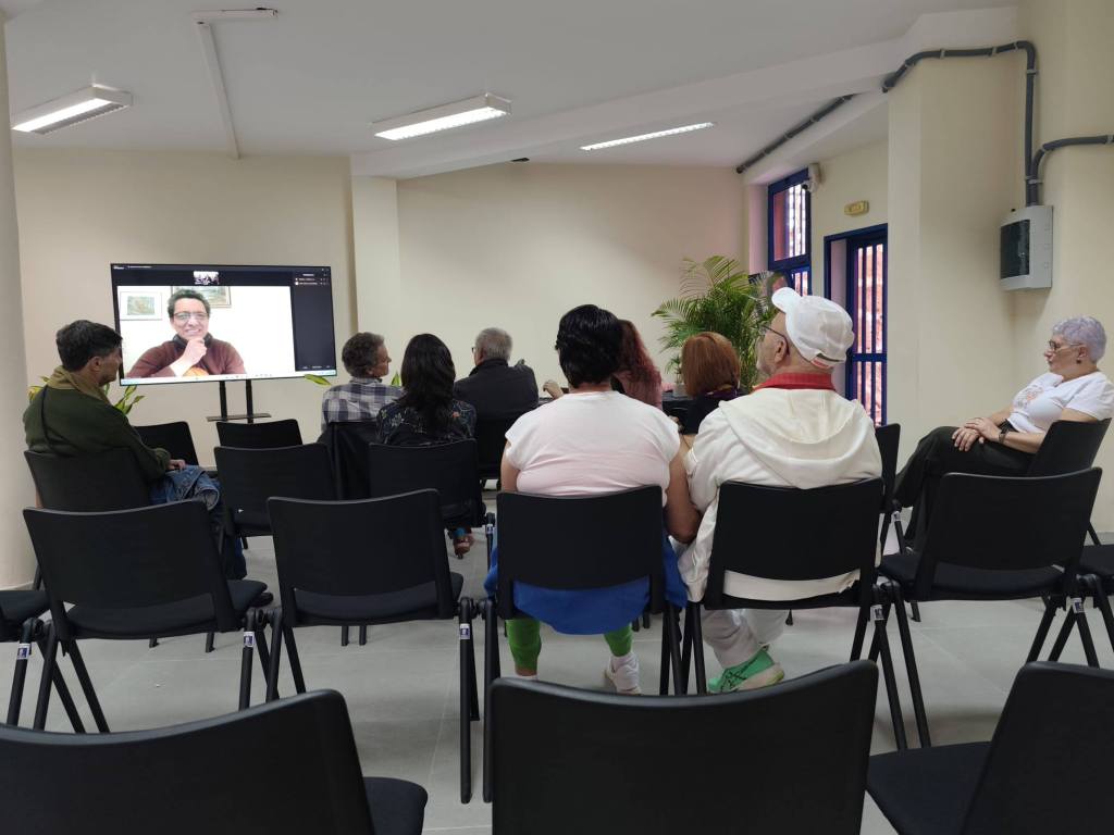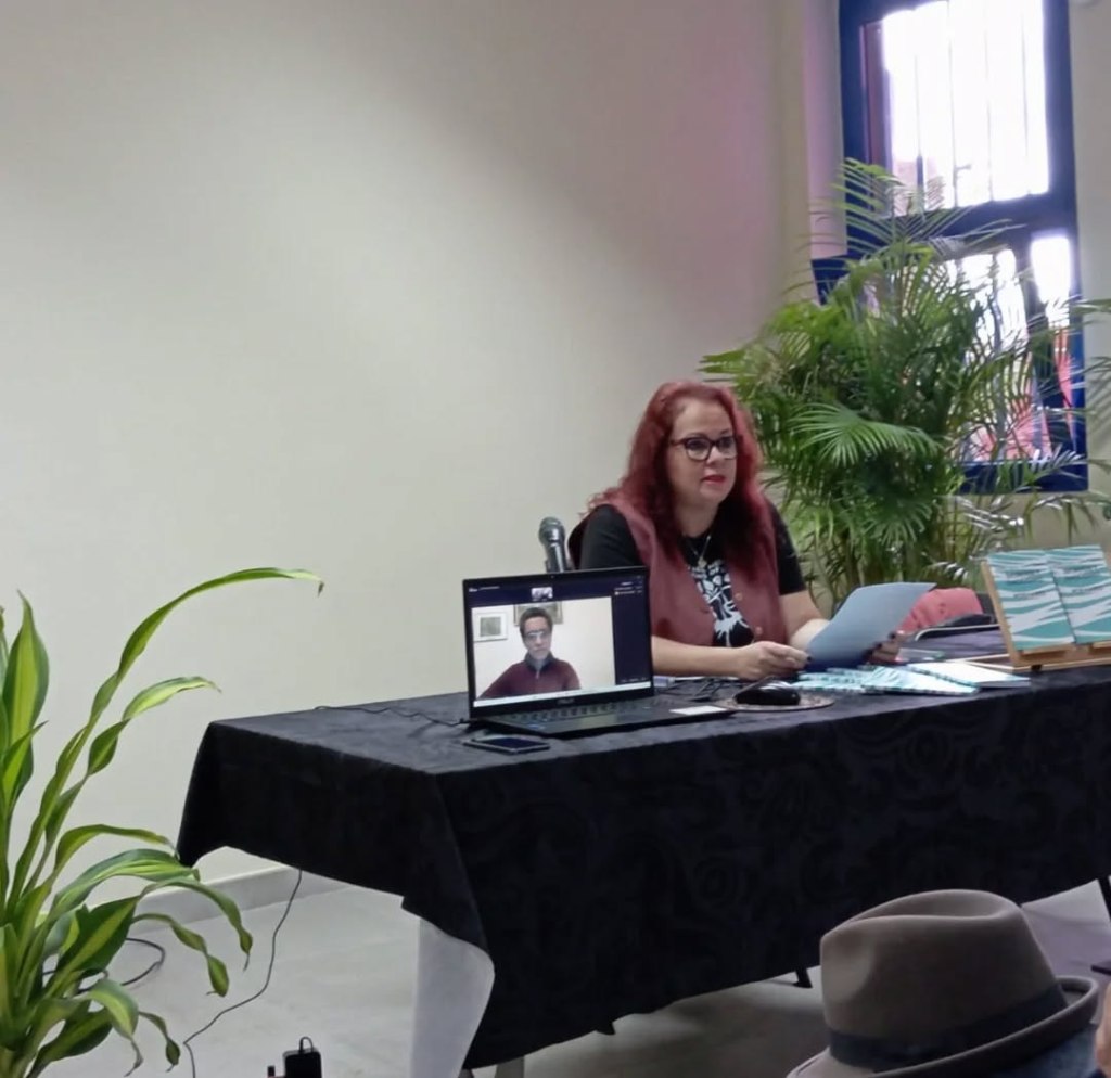La presentación, incluida dentro del programa de actividades organizado con motivo del Día Internacional del Libro, contó con la participación vía streaming del cantante y poeta peruano, Javier Cáceres, quien interpretó a guitarra varios de los poemas incluidos en el poemario que han sido musicalizados por el cantante.